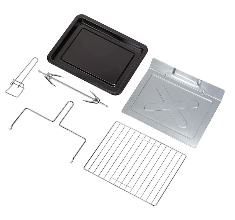 配件 : 烤網 / 烤盤 / 烤叉 / 烤叉托架 / 烤盤夾 / 可拆式碎屑盤