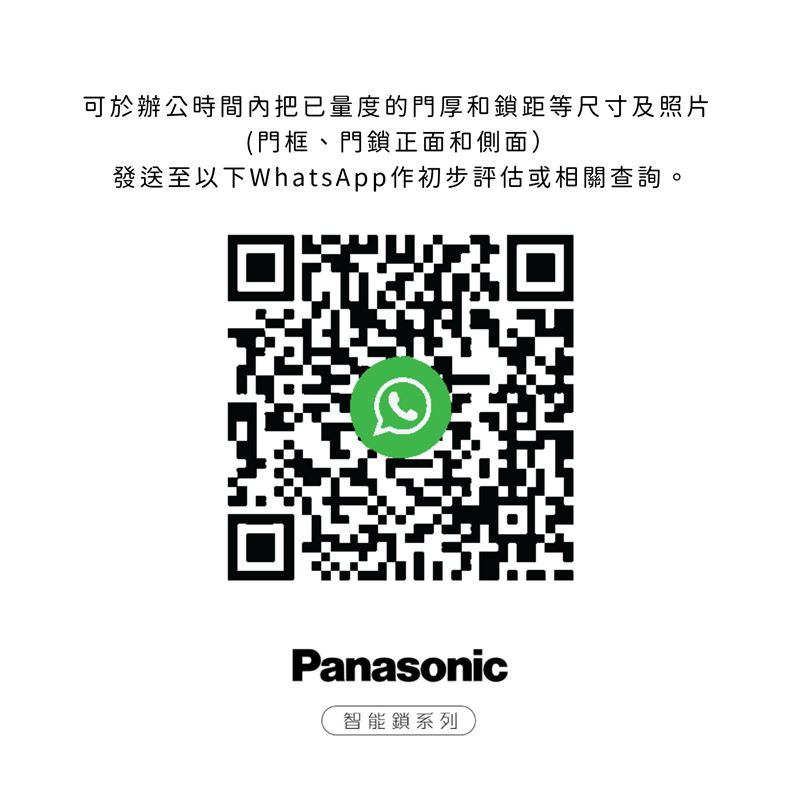 • 可於辦公時間內將已量度的門厚和鎖距等尺寸及照片(門框、門鎖正面和側面)發送至WhatsApp作初步評估或相關查詢: 傳送WhatsApp至6117-7235