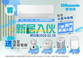 於推廣期內,凡購買Rasonic樂信牌 以下指定分體冷氣機系列*,即可獲得指定 Rasonic 樂信牌家庭電器乙部 。贈品數量有限,送完即止。(只限澳門經銷商)