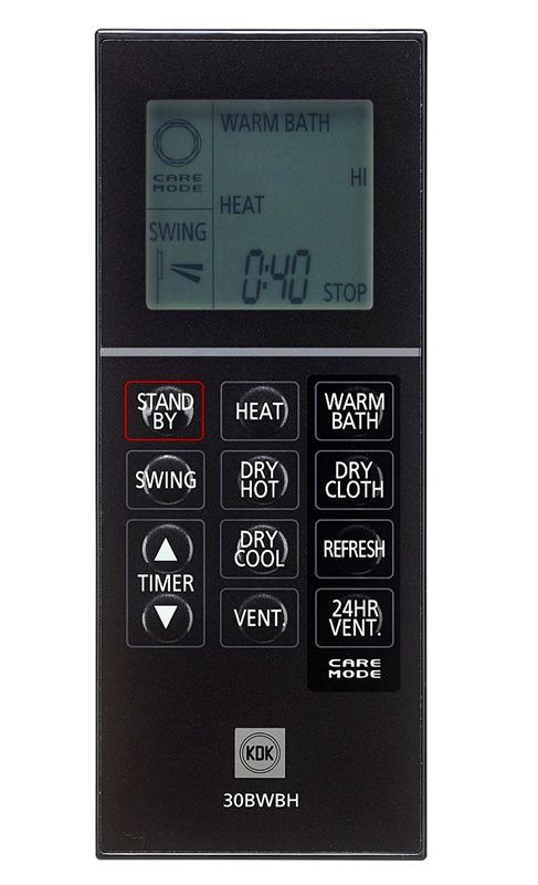• Heating, Dry Hot (Clothes Drying) and Dry Cool (Circulation) functions with Hi / Lo selection; Ventilation function with Hi / Mid / Lo selection